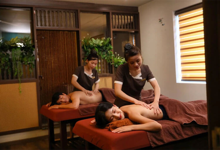 Dịch vụ massage body tại đây mang phong cách kết hợp Việt – Thái, tập trung vào kỹ thuật ấn huyệt chuyên sâu nhằm giảm đau cơ, tăng cường tuần hoàn máu và giải tỏa căng thẳng hiệu quả. Khách hàng có thể lựa chọn các gói 60 hoặc 90 phút; trong đó, gói 90 phút được nhiều người khuyến khích vì giúp cơ thể thư giãn trọn vẹn hơn. Trong suốt liệu trình, kỹ thuật viên luôn điều chỉnh lực tay theo nhu cầu, đảm bảo sự dễ chịu tối đa.